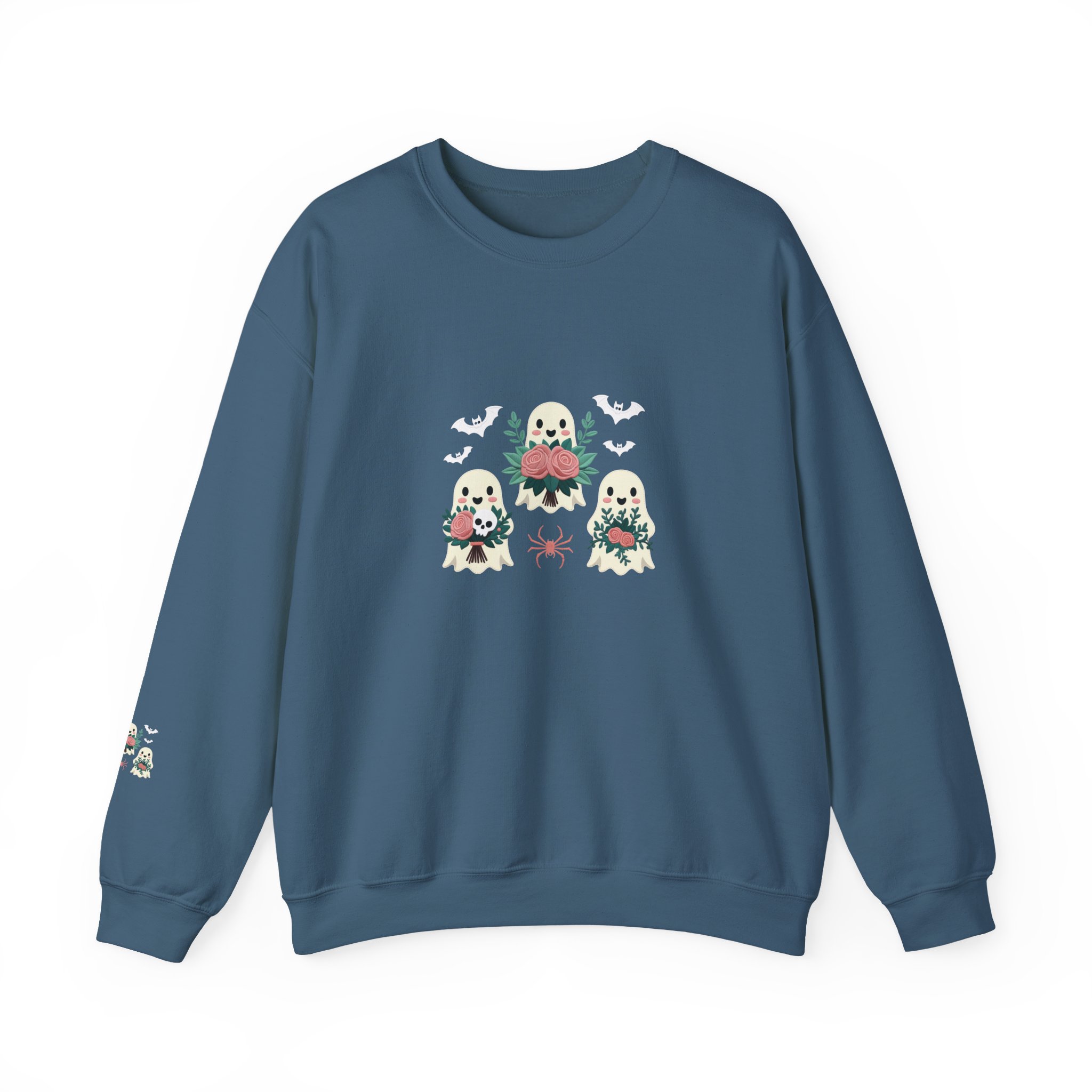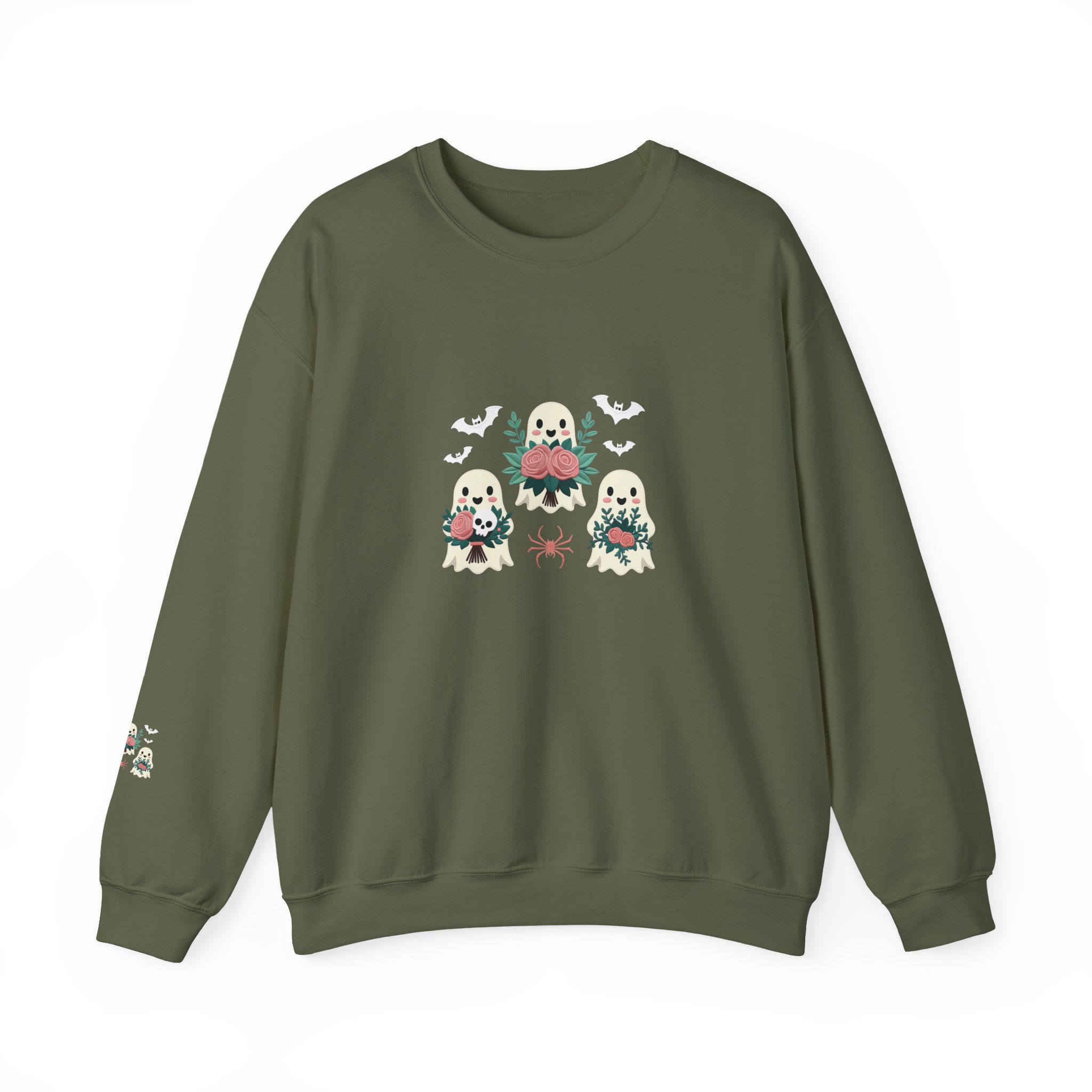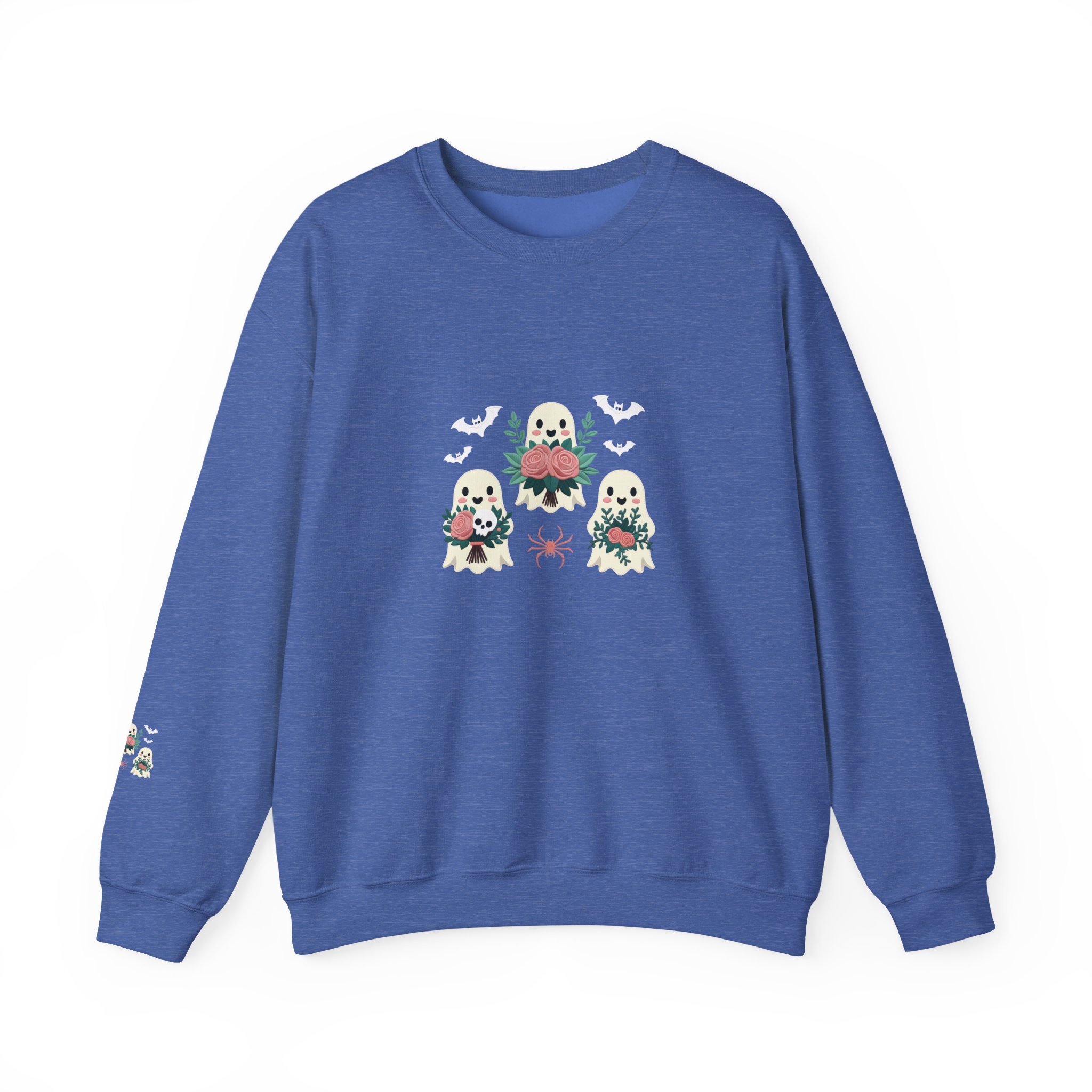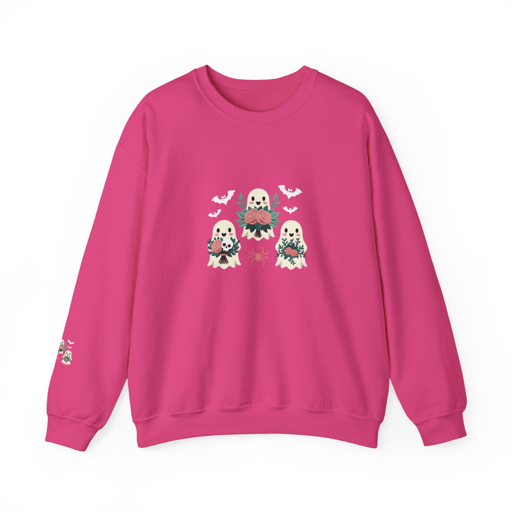 This is more than just a Halloween top; it’s a celebration of friendship and fall comfort, featuring three charming, flower-toting ghosts on a deep Maroon crewneck.