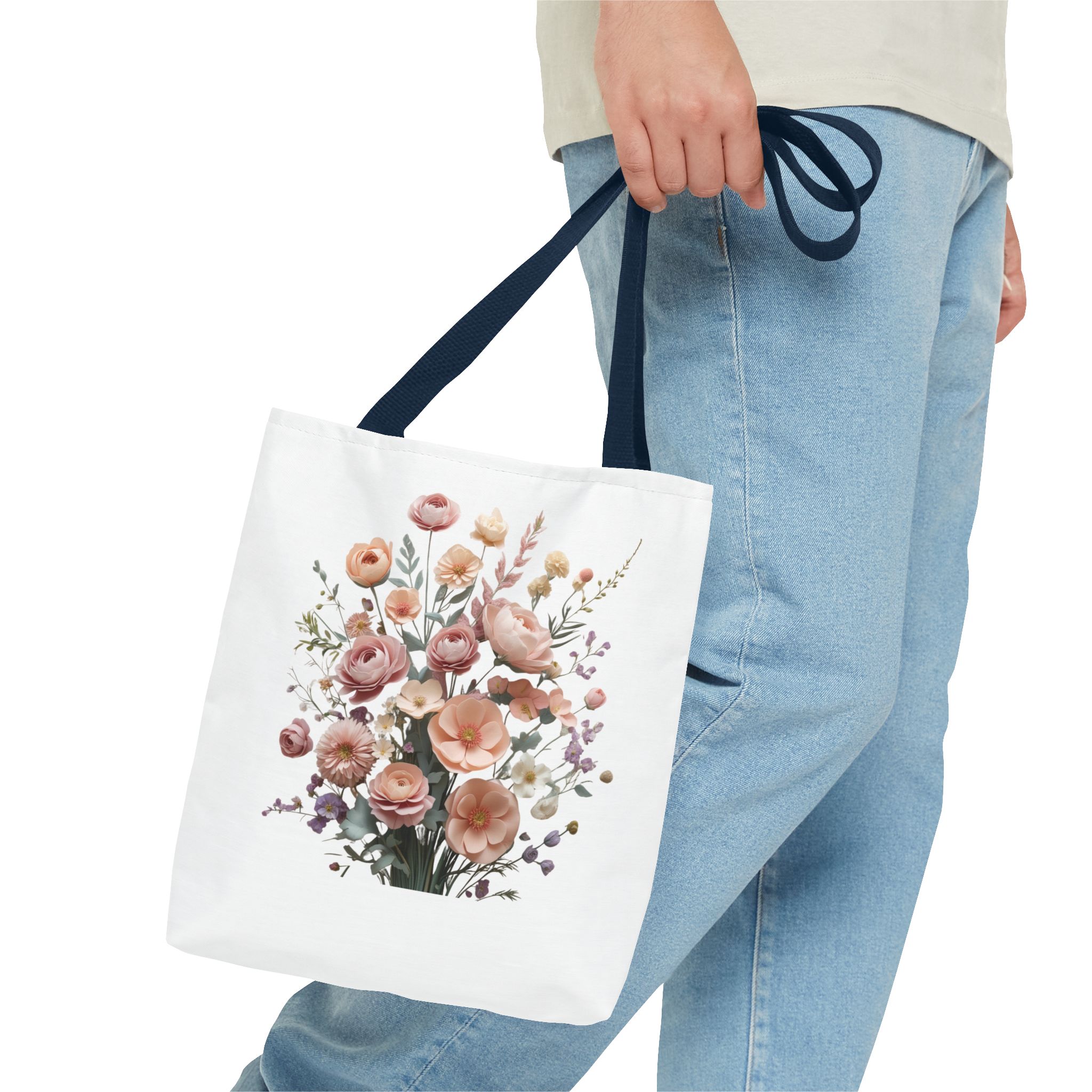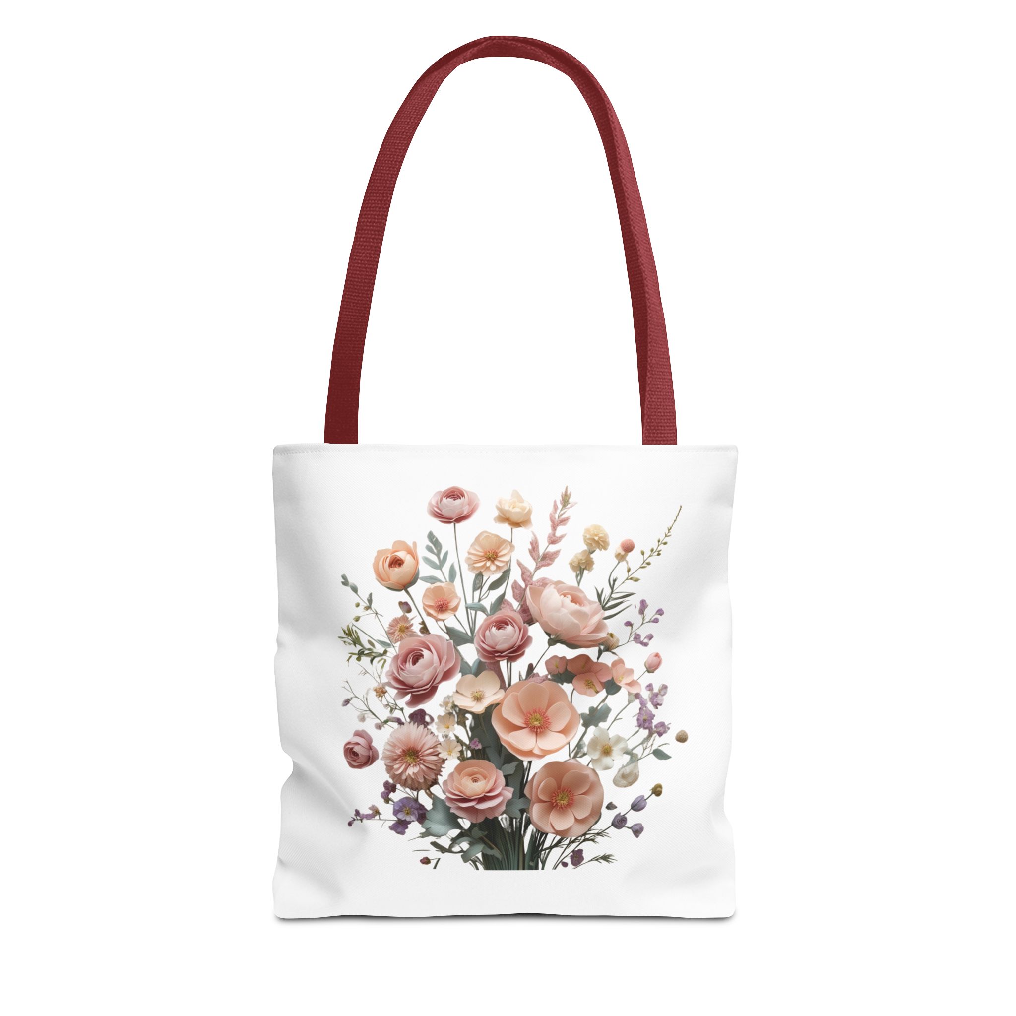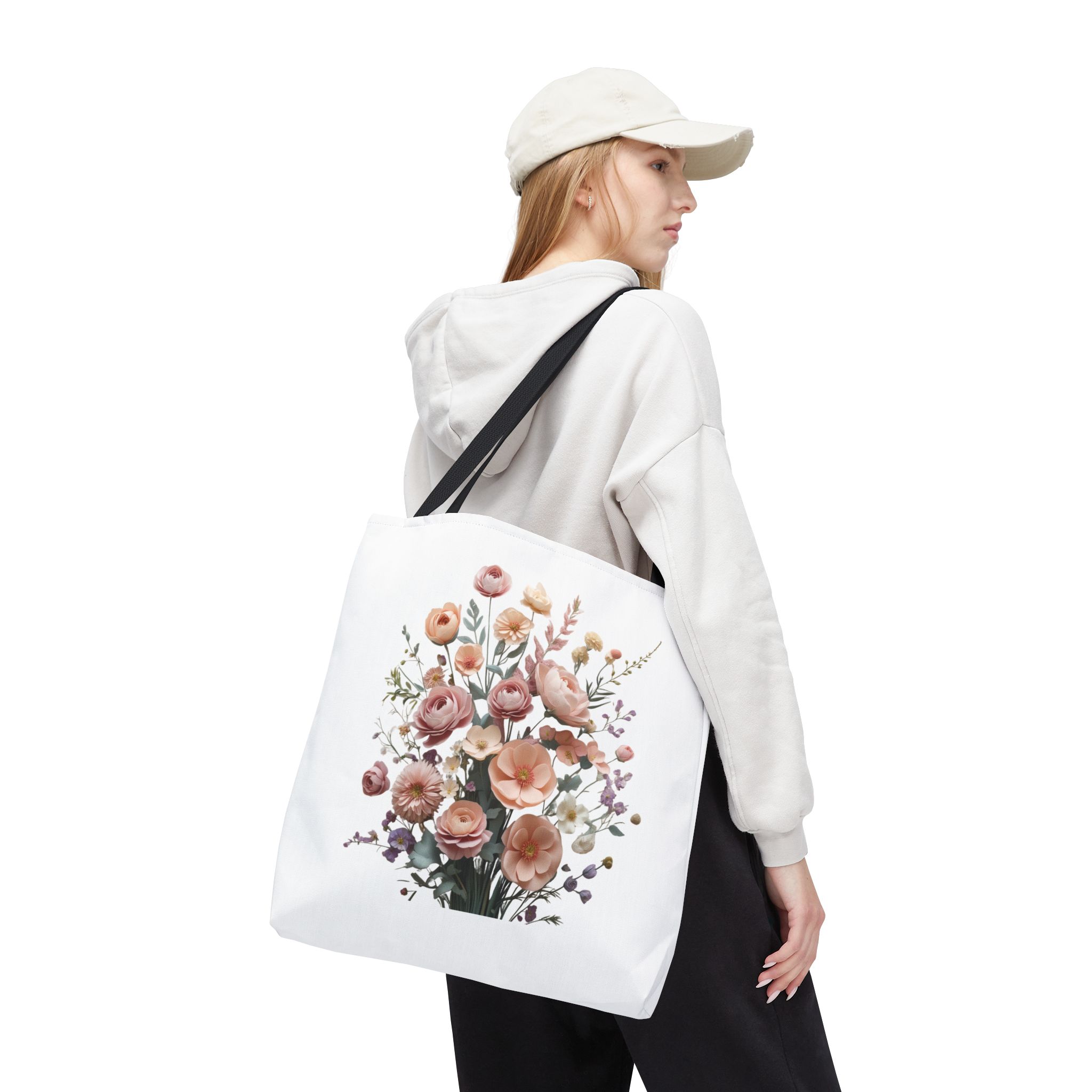 Introducing a stunning Tote Bag, perfect for carrying your essentials with style! This tote draws inspiration from nature, featuring an elegant floral bouquet design that adds a touch of beauty to your everyday outings. Lightweight yet durable, it offers ample room for your belongings, making it ideal for shopping trips, beach days, or daily errands.